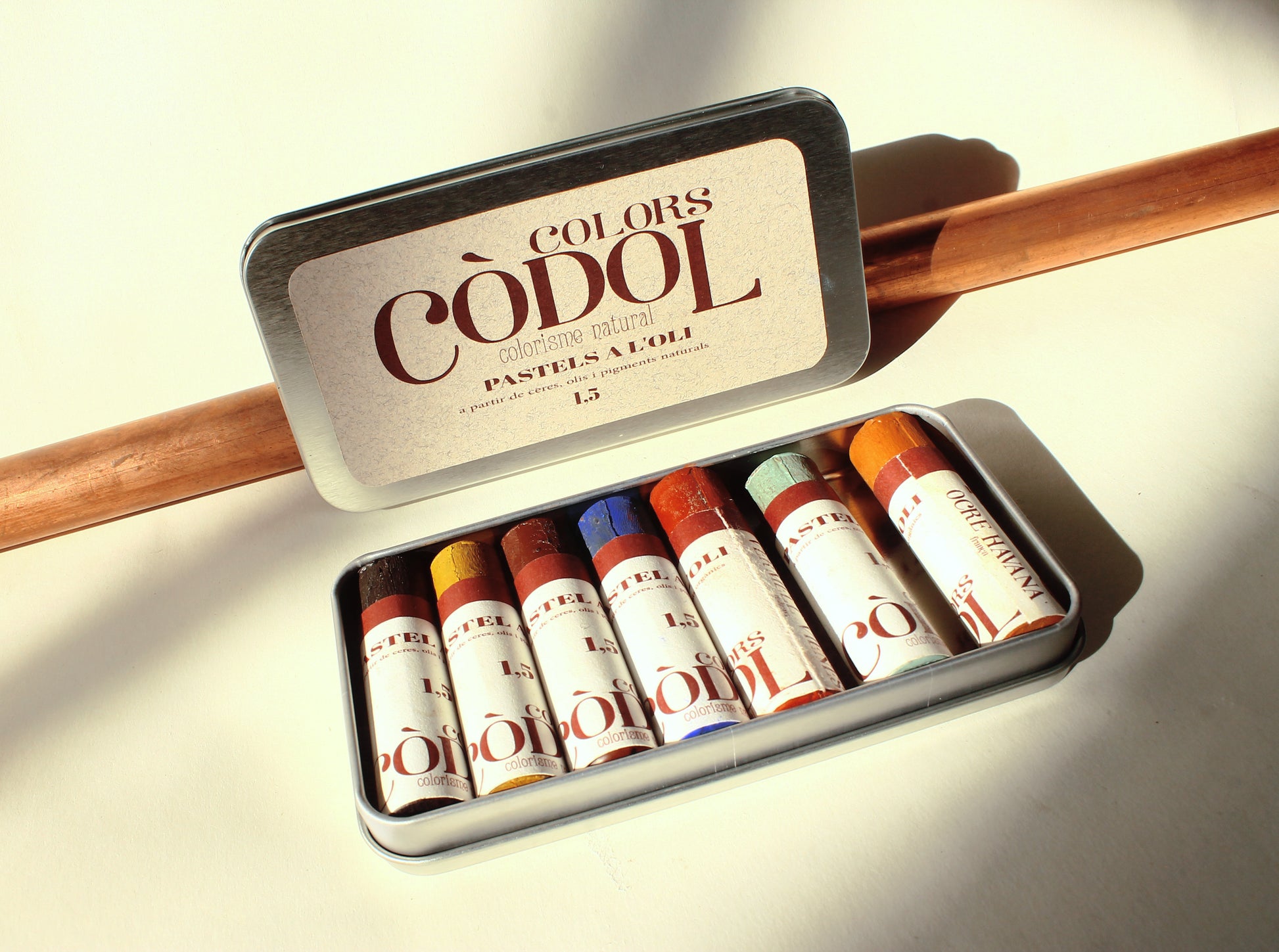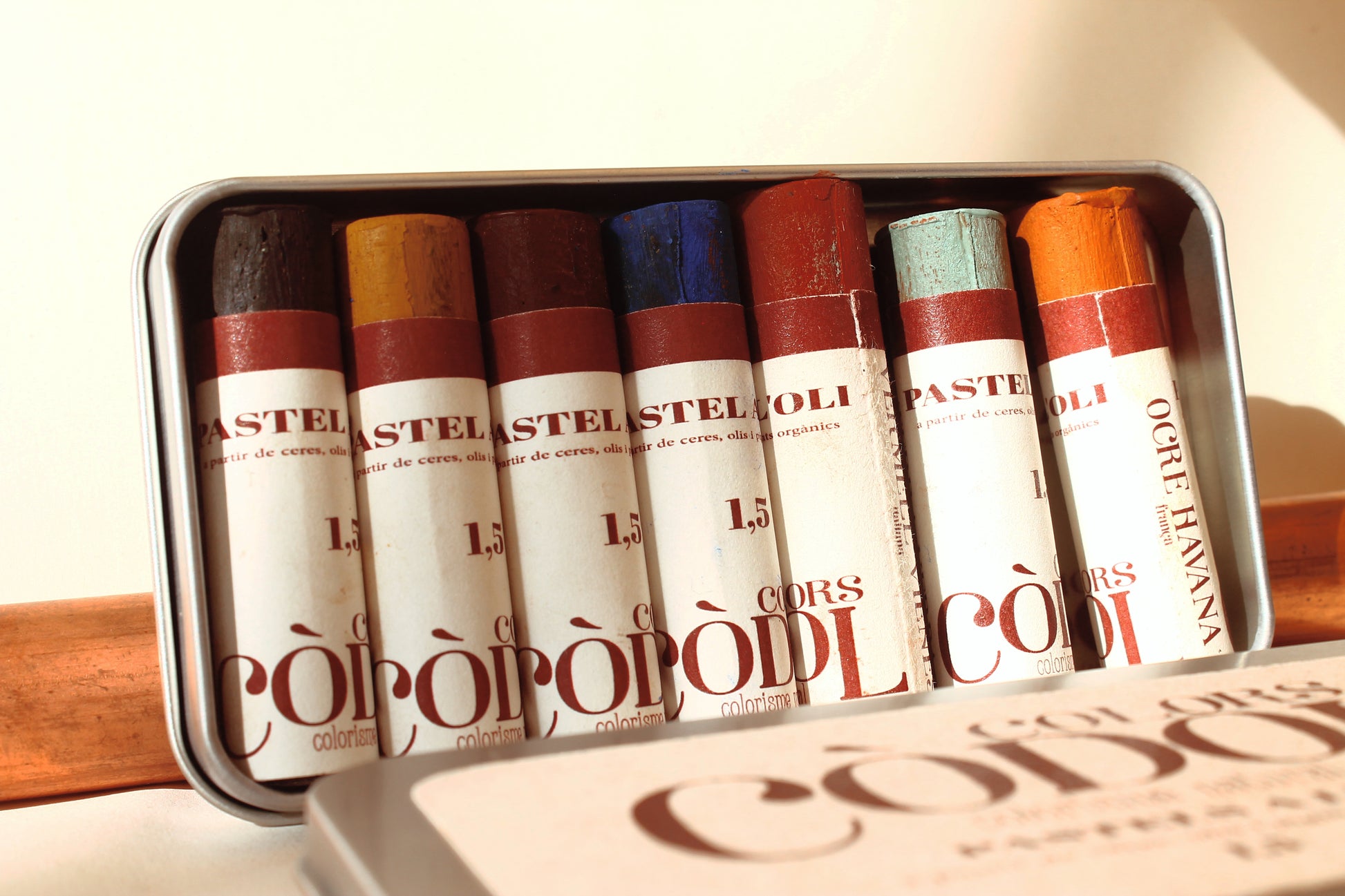 Fets 100% a mà a partir d'ingredients naturals. Tots els pigments menys un són terres, i les ceres que s'han fet servir com a aglutinant no porten parafina i són d'origen natural.